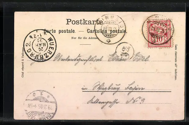alte Ansichtskarte, gelaufen 1905, guter Zustand