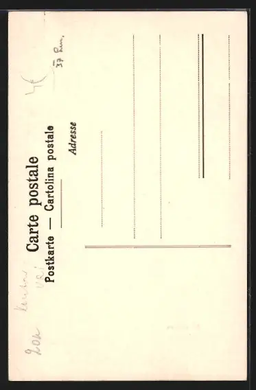 Personenbezogene Daten auf der Rückseite der Karte wurden durch blauen Textmarker unkenntlich gemacht. Die blauen Stellen sind auf die Vorderseite durchgeweicht und wirken sich negativ auf das Postkartenfoto aus