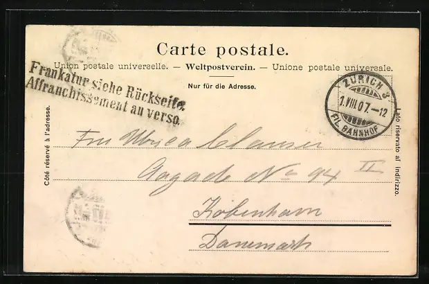alte Ansichtskarte, gelaufen 1907, guter Zustand