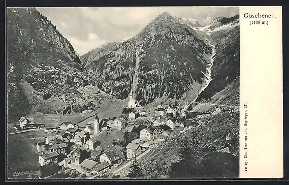 AK Göschenen, Teilansicht mit Kirche