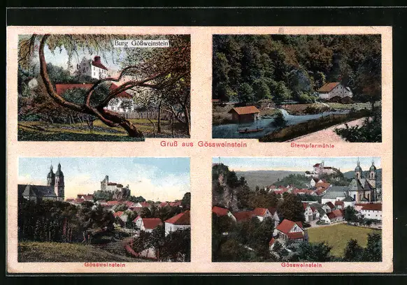 AK Gössweinstein, Burg Gössweinstein, Stempfermühle, Ortspartie mit Kirche