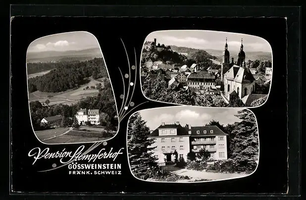 AK Gössweinstein /Fränk. Schweiz, Pension Stempferhof, Ortspartie, Teilansicht mit Kirche