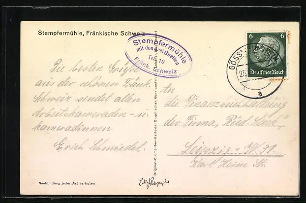 AK Gössweinstein, Gasthaus Stempfermühle i. Fränk. Schweiz