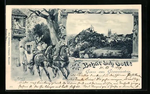 AK Gössweinstein, Ortsansicht, Kutscher mit Horn