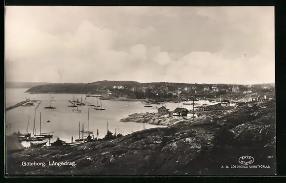 AK Göteborg, Langedrag, Segelschiffe in der Bucht