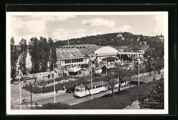 AK Göteborg, Messehallen einer Ausstellung, Strassenbahn