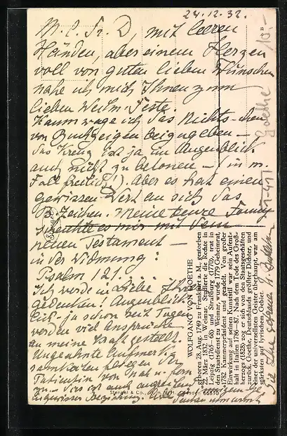 AK Goethe unter einem Mistelzweig mit Gedicht