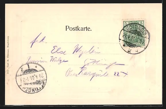 alte Ansichtskarte, gelaufen 1901, Stempelspur, guter Zustand