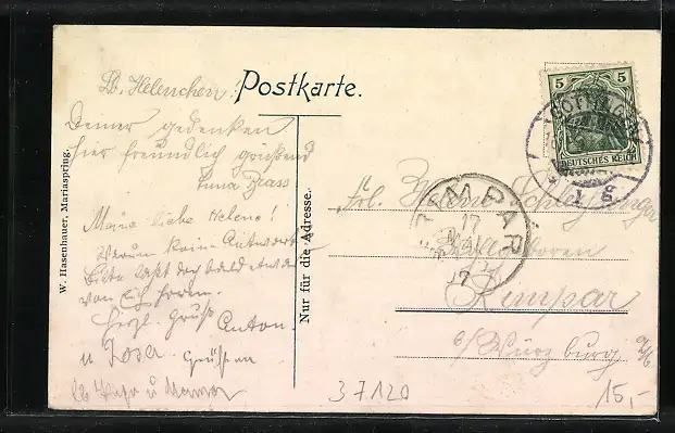 alte Ansichtskarte, gelaufen 1907, guter Zustand