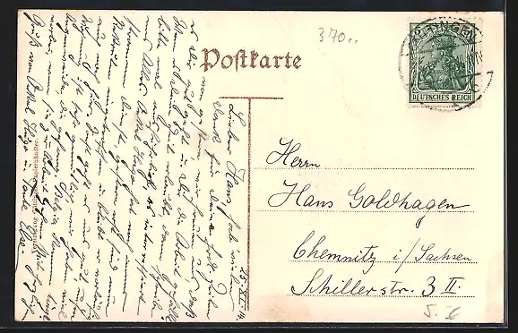alte Ansichtskarte, gelaufen 1914, guter Zustand