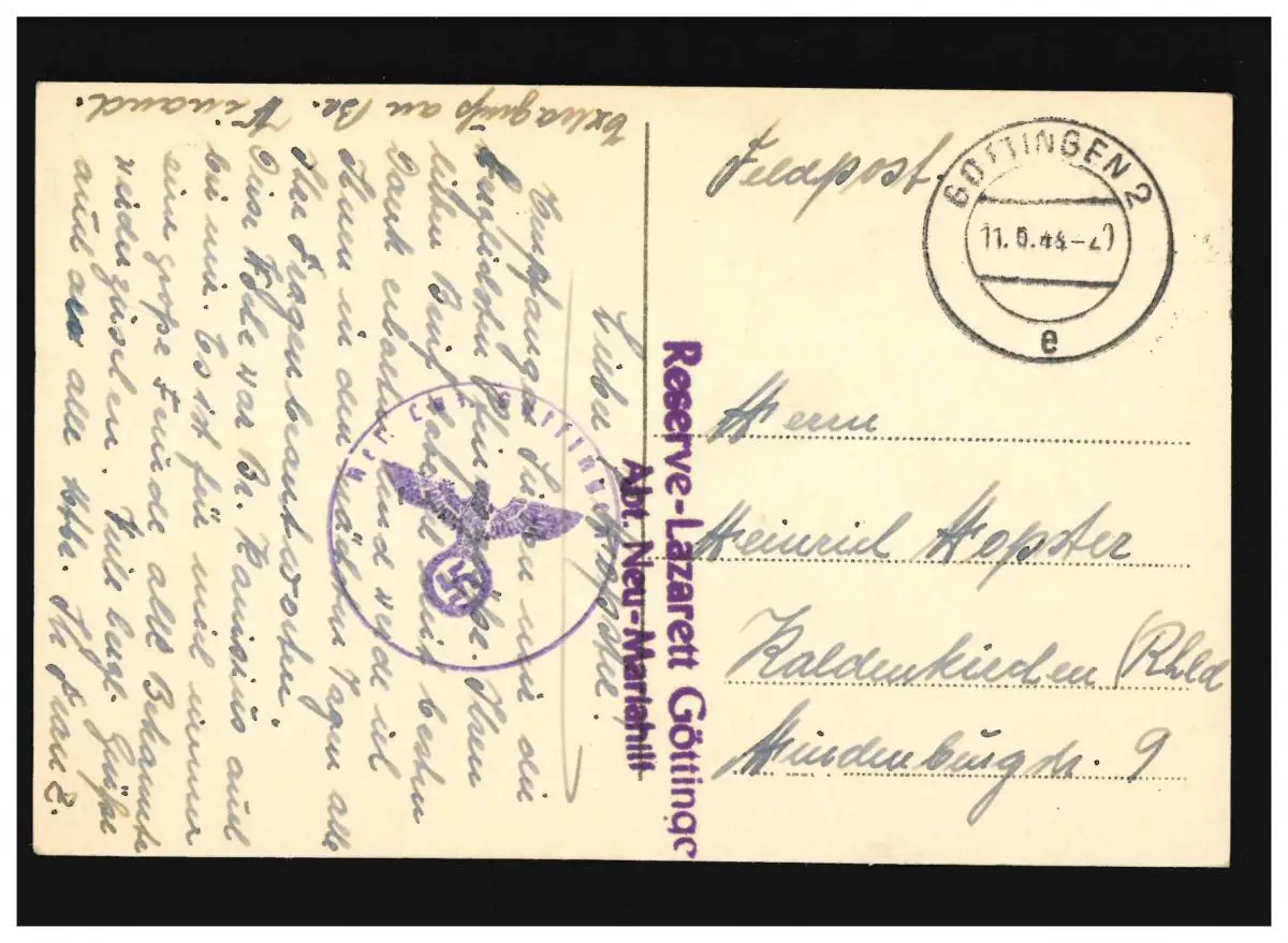 AK Göttingen Johanniskirche Feldpost Lazarett, Göttingen 11.6.1943