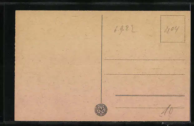 Personenbezogene Daten auf der Rückseite der Karte wurden durch blauen Textmarker unkenntlich gemacht. Die blauen Stellen sind auf die Vorderseite durchgeweicht und wirken sich negativ auf das Postkartenfoto aus