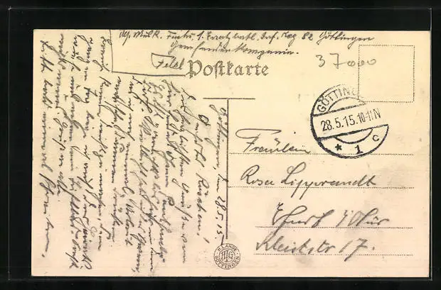 alte Ansichtskarte, gelaufen 1915 als Feldpost