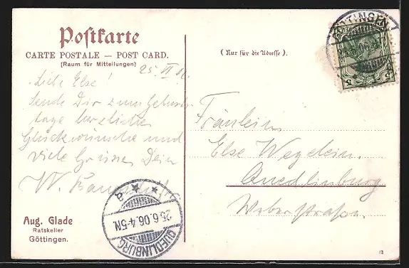 alte Ansichtskarte, gelaufen 1906, Stempelspur, guter Zustand