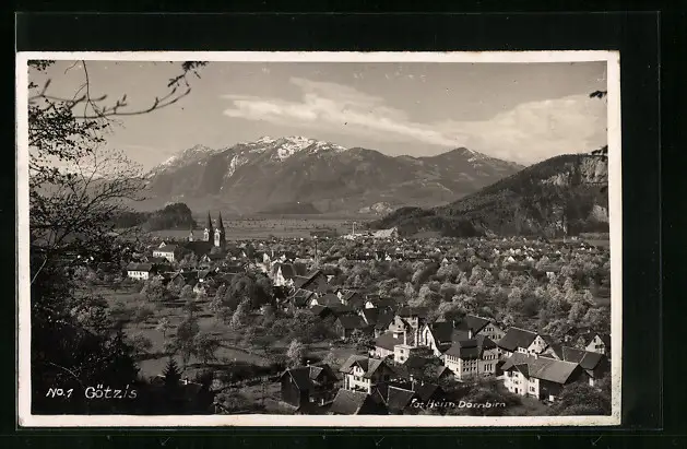 AK Götzis, Totalansicht mit Blick auf Berge