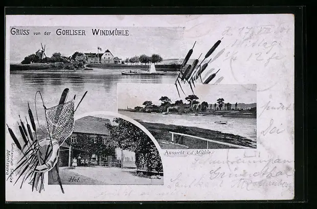 AK Gohlis bei Dresden, Gasthaus, Windmühle