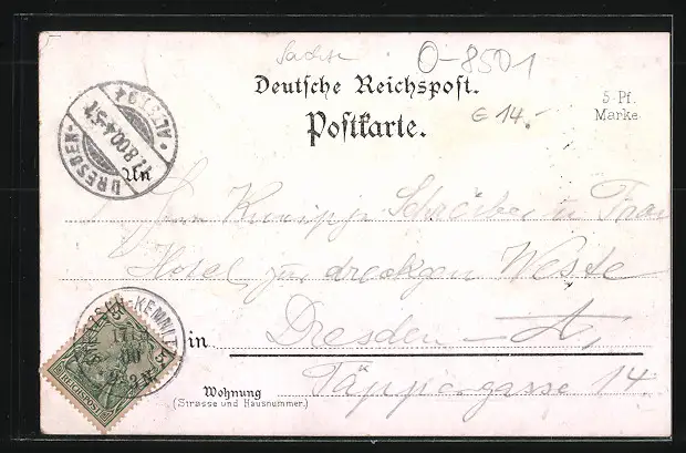 alte Ansichtskarte, gelaufen 1900, guter Zustand