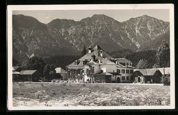 AK Goisern, Ortsansicht mit Bergpanorama