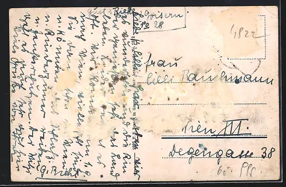 alte Ansichtskarte, gelaufen, rückseitig Klebe- und Papierreste, rückseitig Oberflächenschaden, Eckknick li. oben, guter Zustand