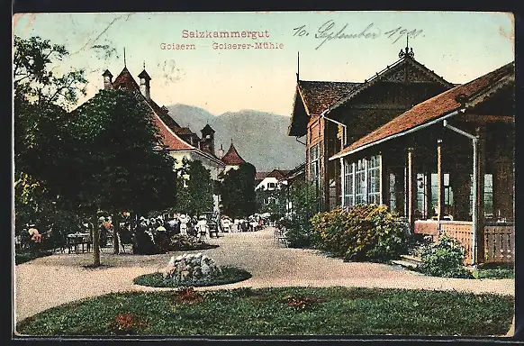 AK Goisern /Salzkammergut, Goiserer Mühle mit Besuchern
