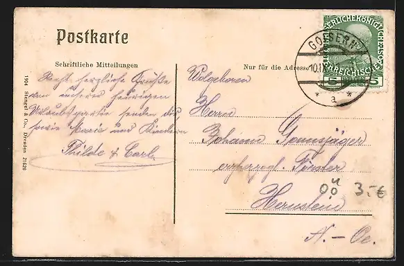 alte Ansichtskarte, gelaufen 1911, Eckknicke oben, Stempelspur, guter Zustand