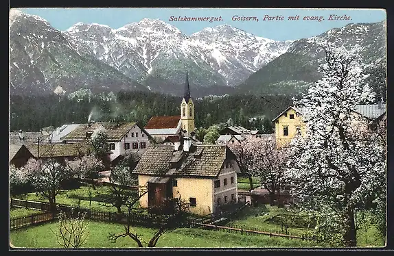 AK Goisern /Salzkammergut, Partie mit evangelischer Kirche