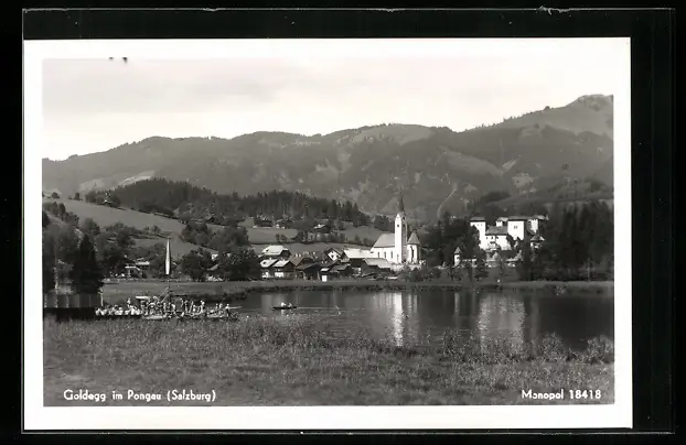 AK Goldegg im Pongau, Uferpartie mit Kirche