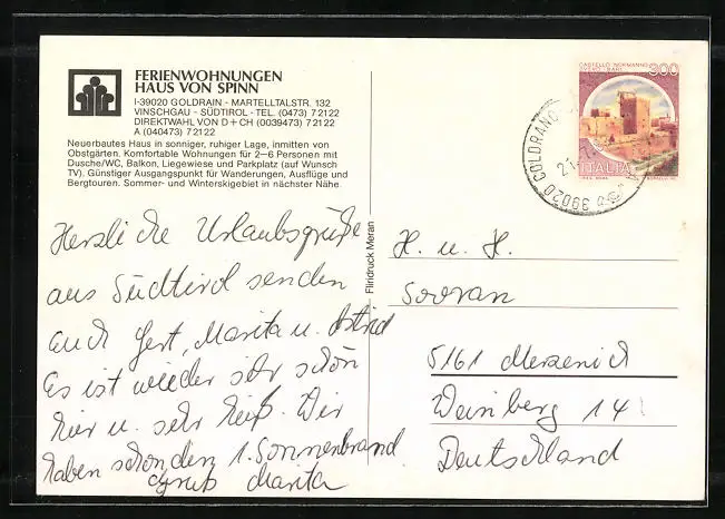 AK Goldrain, Ferienwohnungen Haus von Spinn