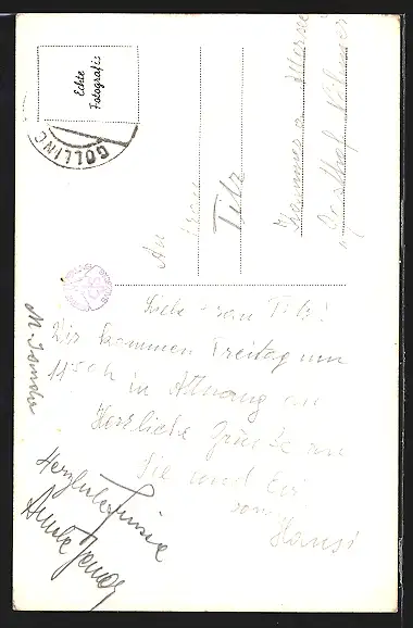 alte Ansichtskarte, gelaufen, Briefmarke entfernt, guter Zustand