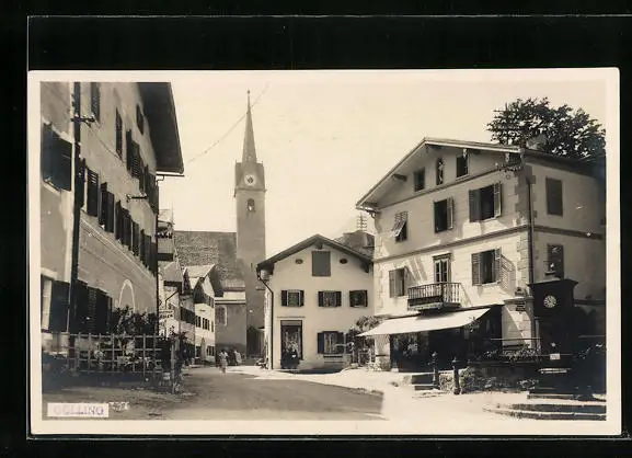 AK Golling, Marktplatz mit Wettersäule und die Kirche