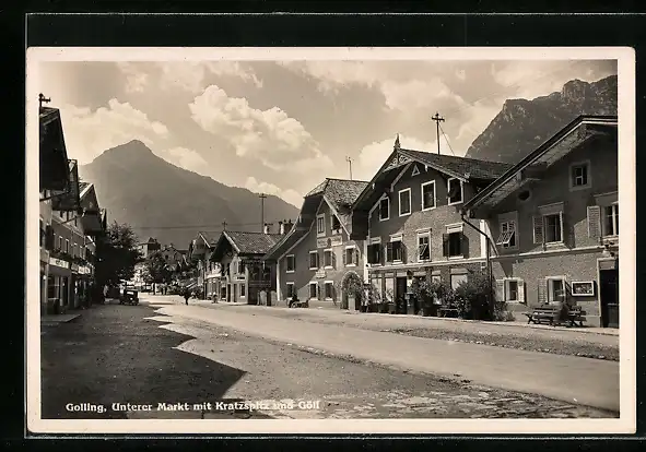AK Golling, Unterer Markt mit Kratzspitz und Gölf