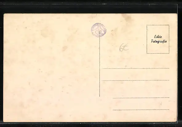 Personenbezogene Daten auf der Rückseite der Karte wurden durch blauen Textmarker unkenntlich gemacht. Die blauen Stellen sind auf die Vorderseite durchgeweicht und wirken sich negativ auf das Postkartenfoto aus