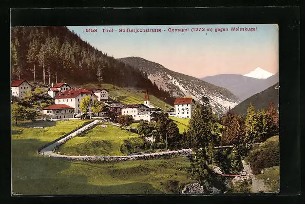 AK Gomagoi, Ortsansicht gegen Weisskugel an der Stilfserjochstrasse