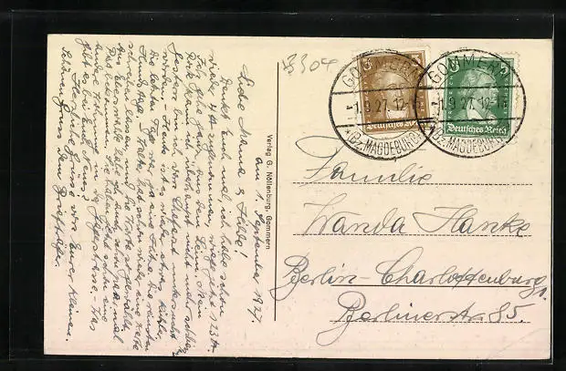 gelaufen 1927, Eckknicke li. unten, guter Zustand
