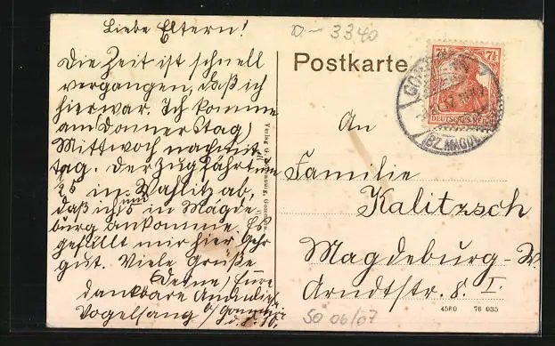 alte Ansichtskarte, gelaufen 1917, guter Zustand