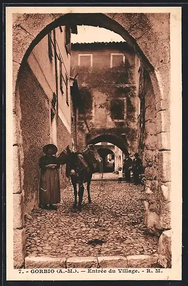 AK Gorbio /Alpes-Maritimes, Entrée du Village