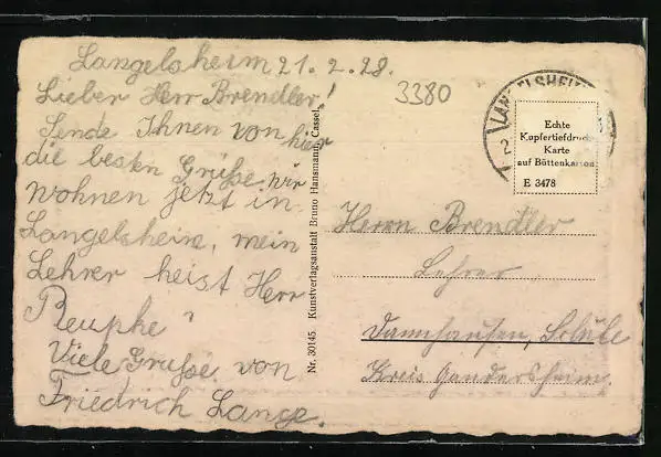 alte Ansichtskarte, gelaufen 1928, Briefmarke tw. entfernt, rückseitig Oberflächenschaden, Eckknick li. oben, guter Zustand