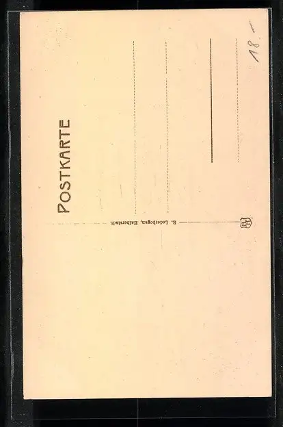 Personenbezogene Daten auf der Rückseite der Karte wurden durch blauen Textmarker unkenntlich gemacht. Die blauen Stellen sind auf die Vorderseite durchgeweicht und wirken sich negativ auf das Postkartenfoto aus