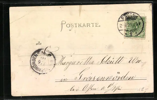 alte Ansichtskarte, gelaufen 1900, Eckknick rechts oben, guter Zustand