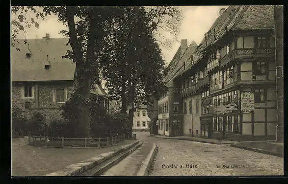 AK Goslar .a Harz, Strasse am Marktkirchof mit Hotel Kronprinz Ernst August