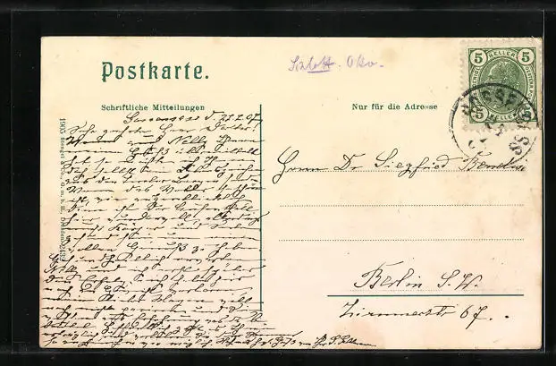 alte Ansichtskarte, gelaufen 1907, guter Zustand