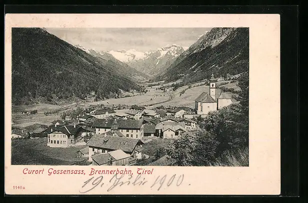 AK Gossensass /Brennerbahn, Panorama mit Kirche