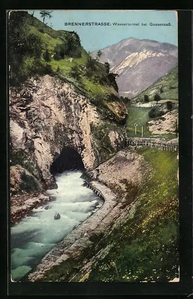 AK Gossensass, Brennerstrasse, Partie am Wassertunnel