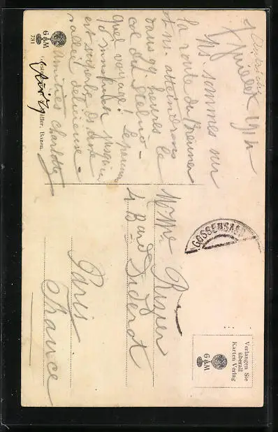 alte Ansichtskarte, gelaufen, Briefmarke entfernt, guter Zustand