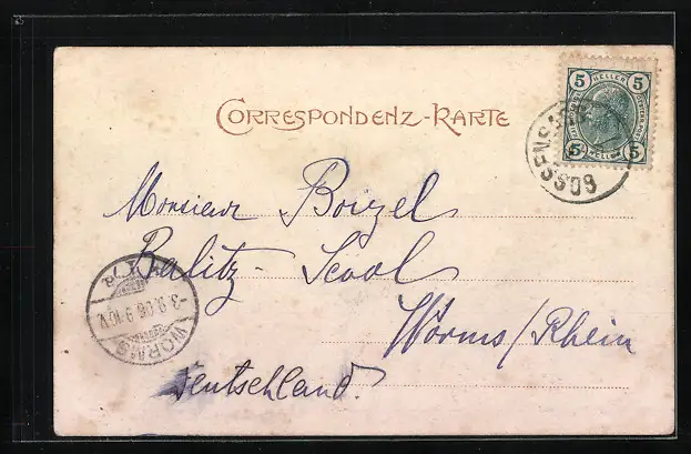 gelaufen 1906, Ecken bestoßen, guter Zustand