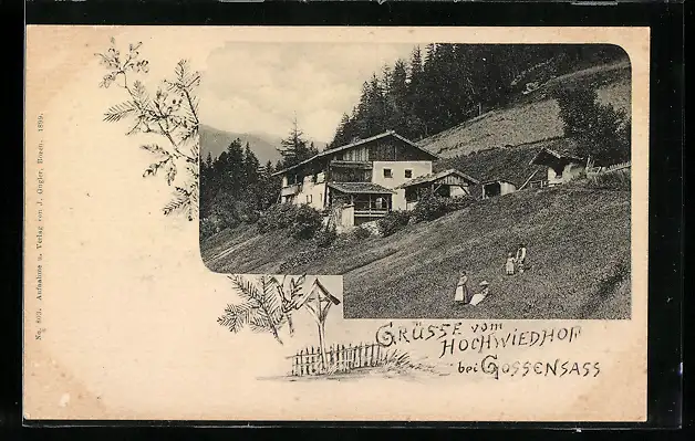 AK Gossensass, Hochwiedhof mit Almwiese