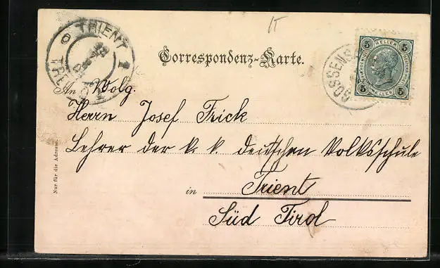 alte Ansichtskarte, gelaufen 1904, Stempelspur, guter Zustand
