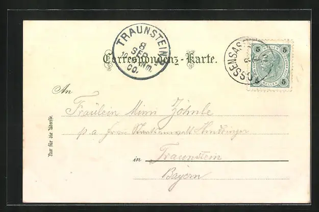 alte Ansichtskarte, gelaufen 1900, Stempelspur, Eckknick li. oben, guter Zustand