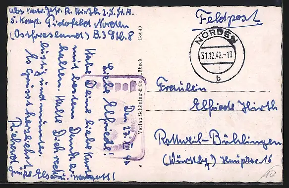 alte Ansichtskarte, gelaufen 1942, Eckknick re. oben, guter Zustand