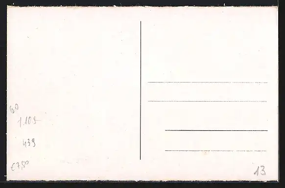 Personenbezogene Daten auf der Rückseite der Karte wurden durch blauen Textmarker unkenntlich gemacht. Die blauen Stellen sind auf die Vorderseite durchgeweicht und wirken sich negativ auf das Postkartenfoto aus